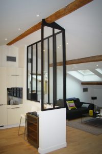 Verrière style atelier, verrière d’artiste, séparation type atelier, cloison d’atelier vitrée, fenêtre d’atelier, verrière style loft, baie vitrée atelier …tous ces termes font référence à la verrière d’atelier si pratique pour aménager votre intérieur en permettant la transmission de lumière entre vos pièces et en intégrant une touche déco.